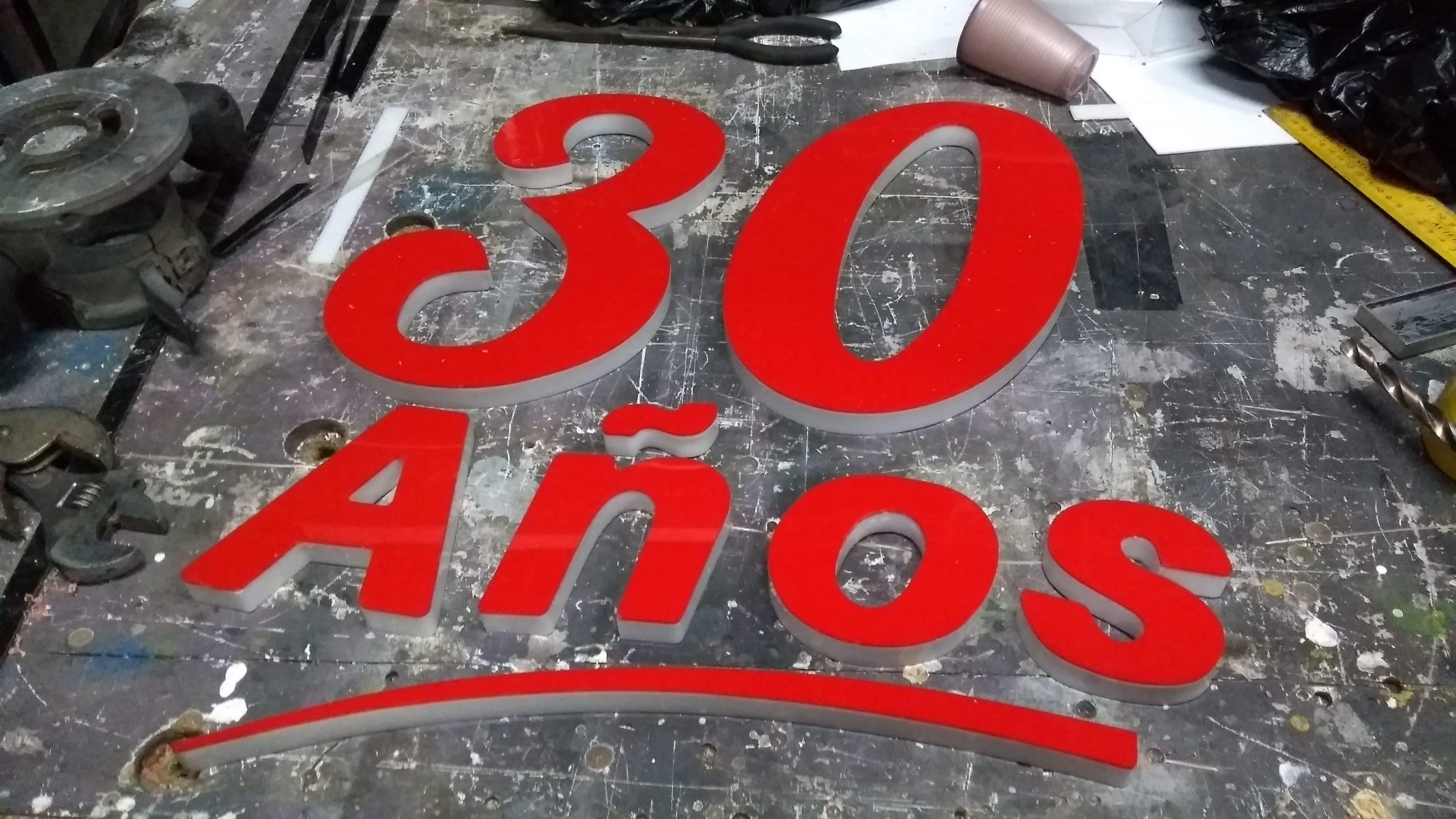 Fabricación de letras individuales planas o con relieve, iluminación interna o iluminación indirecta.